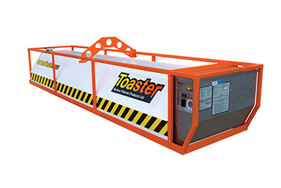 The TOASTER Infrared Ground Thawing Equipment by Serious Thermal Products Ltd., is a propane-fired, electrically operated infra-red ground thawing device specifically designed to remove frost from frozen ground to allow for installation, repair, and replacement of buried utilities and excavation of small areas or trenching. The device is field inspected, tested and approved (labelled with field evaluation labels) for Canada and the United States. The use of infrared technology provides the advantages of: